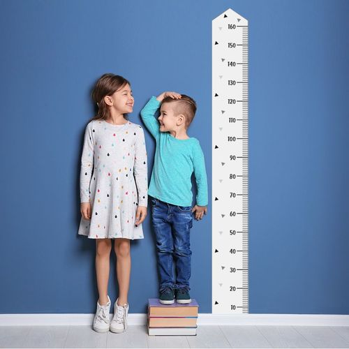Naklejka drukowana na ścianę wycinana z folii matowej z miarką wzrostu.