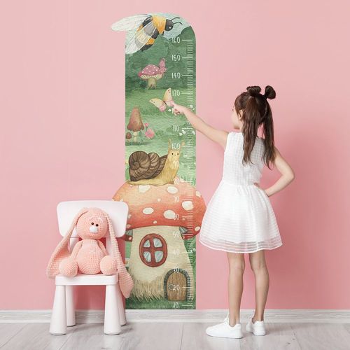 Naklejka Miarka Wzrostu Ślimak DK462 to fantastyczna dekoracja, która doda uroku każdemu pokojowi dziecięcemu. Dzięki wyrazistemu motywowi leśnej krainy, w której znalazł się uroczy ślimak relaksujący się na domku z muchomora, stworzysz niezwykłą atmosferę, sprzyjającą zabawie i rozwojowi Twojego malucha. Wzór został wzbogacony o kolorowe elementy, takie jak pszczoła, motylki i grzyby, co czyni go niezwykle atrakcyjnym dla najmłodszych.