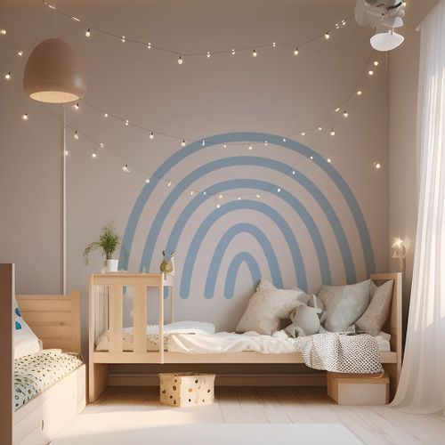 Drukowana naklejka tęcza z folii matowej do pokoju dziecięcego. Jednokolorowa tęcza do wyboru w wariancie różowym lub niebieskim wprowadzi do pokoju malucha nową energię jednocześnie zachowując prostotę i subtelność dekoracji.