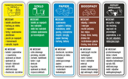 Naklejki z tego zestawu mają kolorystykę i treść zgodne z najnowszymi wytycznymi odnośnie segregacji odpadów.