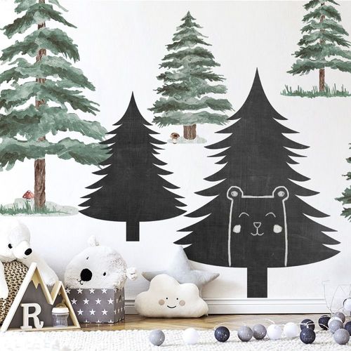 Naklejki tablicowe w kształcie świerków będą świetną, funkcjonalną ozdobą w pokoju dziecka.