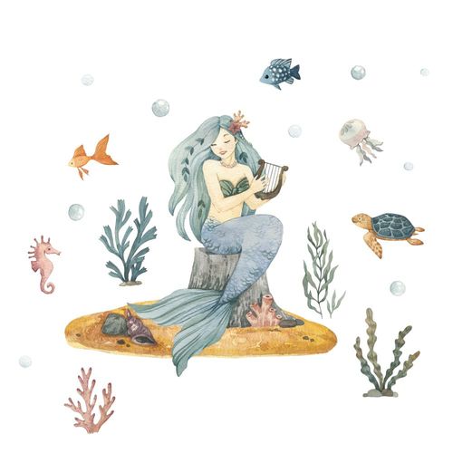 Odkryj magiczny świat podmorskiej krainy z zestawem naklejek na ścianę Syrena DK455 L! Marzysz o tym, aby wprowadzić do swojego wnętrza odrobinę magii? Nasze naklejki, wycinane z wysokiej jakości matowej folii, przeniosą Cię do bajkowego królestwa, gdzie żyją najcudowniejsze stworzenia morskie. W skład tego wyjątkowego zestawu wchodzą nie tylko urocze syreny, ale także żółw morski, różnorodne ryby, meduza, konik morski oraz piękne rośliny! Każdy element dekoracji wykonany jest w stonowanych kolorach, które doskonale harmonizują ze sobą i wniosą do Twojego domu niepowtarzalny charakter.