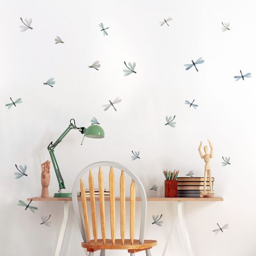 Zestaw drukowanych naklejek na ścianę wycinany z folii matowej z ważkami.