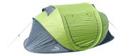 Po bokach znajdują się okna wentylacyjne z dachem dla optymalnej cyrkulacji powietrza wewnątrz. Materiał namiotu jest wodoodporny, przetestowany przy słupie wody 3000 mm (PU 3000), podłoga jest wzmocniona. Warto wspomnieć o klejonych szwach, aby zapobiec wnikaniu wilgoci i wody. Pręty nośne są wykonane z trwałych włókien szklanych i nie trzeba ich składać. Wszystko, co musisz zrobić, to rozpakować i zakotwiczyć namiot za pomocą kołków podstawy i kołków namiotu z regulowanymi linami w rogach. Dzięki swoim wymiarom namiot jest kompaktowy i łatwy do przenoszenia.