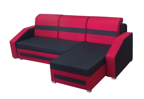 Tył mebla jest obity materiałem, przez co narożnik idealnie prezentuje się również na środku pokoju. Dodatkowym atutem, który odróżnia nasz mebel od innych jest przedłużony boczek mebla oraz listwy na przodzie, co dodaje mu elegancji, szyku. Mebel poza praktyczną funkcją spania posiada także pojemnik na pościel.