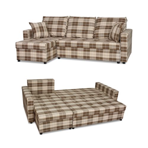 Po rozłożeniu narożnik oferuje dużą powierzchnię spania (dokładne wymiary podane poniżej). Wyposażony w dwa pojemniki wykończone estetycznie na biało, z dodatkowymi listwami wzmacniającymi, umożliwia wygodne przechowywanie pościeli, koców czy innych domowych tekstyliów.