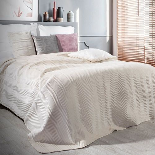 Ekskluzywna narzuta na łóżko SOFIA z miękkiego i przyjemnego w dotyku welwetu pikowanego w dużą, gęstą jodełką. Do pikowania wykorzystano metodę bezszwową hotpress.