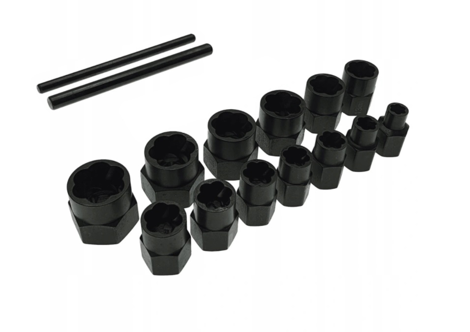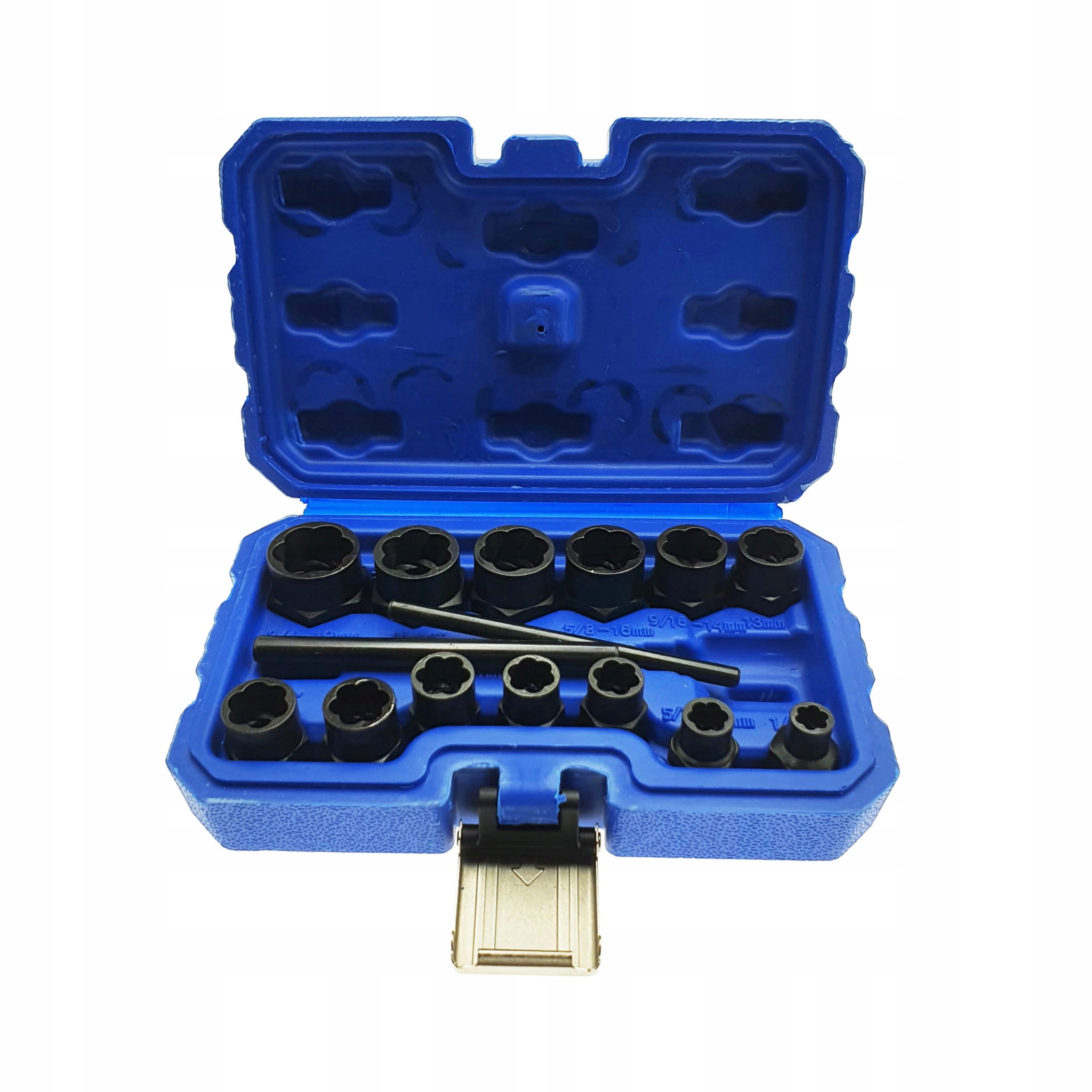 Zestaw nasadek Falon-Tech FT1009 to 15-elementowy komplet do odkręcania uszkodzonych, obrobionych i zapieczonych śrub oraz nakrętek. Specjalny, stożkowy profil roboczy z ostrymi krawędziami umożliwia wrzynanie się w główkę śruby, skutecznie blokując nasadkę i ułatwiając jej odkręcenie.