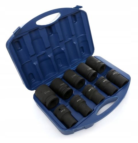 Zestaw składa się z 10 nasadek o różnych rozmiarach od 17 mm do 41 mm, co umożliwia obsługę szerokiej gamy śrub i nakrętek. Nasadki te są niezbędne w pracach mechanicznych, samochodowych, wulkanizacyjnych, ślusarskich oraz w wielu innych warsztatach.