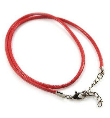 Naszyjnik o długości 45 cm + 5 cm łańcuszek, w kolorze czerwonym. Jest wykonany ze sznurka poliestrowego, nie płowieje i jest bardzo wytrzymały.