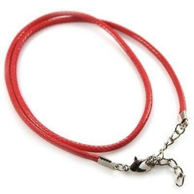 Naszyjnik o długości 45 cm + 5 cm łańcuszek, w kolorze czerwonym. Jest wykonany ze sznurka poliestrowego, nie płowieje i jest bardzo wytrzymały.