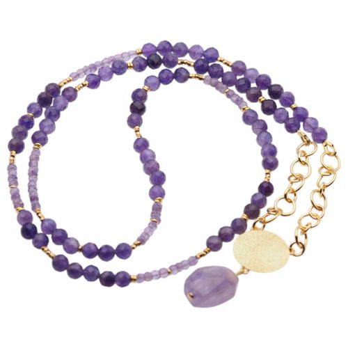 Naszyjnik z fasetowanym Ametystem został zrobiony ręcznie na lince stalowej.