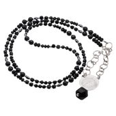 Naszyjnik z fasetowanym Turmalinem czarnym, Onyksem i Hematytem został zrobiony ręcznie na lince stalowej.