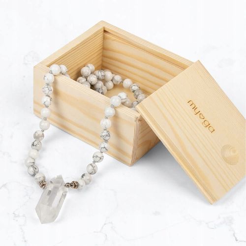Nie zwlekaj! Rozpocznij swoją podróż ku wewnętrznemu wyciszeniu i równowadze już dziś z Naszyjnikiem Mala myga Kryształ górski Howlit.