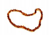Ten naszyjnik z naturalnego bursztynu bałtyckiego o kształcie barokowych koralików w ciepłym kolorze koniakowym to nie tylko piękna ozdoba, ale przede wszystkim niezawodny towarzysz dla malucha. Długość 32 cm idealnie dopasowuje się do delikatnej szyi, a superełki między koralikami zapewniają wyjątkową wygodę i bezpieczeństwo podczas noszenia.