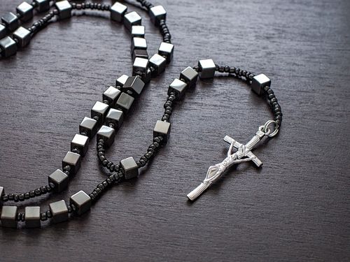 Naszyjnik gwarantuje niezawodność dzięki solidnej konstrukcji z hematytu, uważanego w starożytnym Babilonie za Kamień Wojowników. Jego waga 50 g i precyzyjne wykończenie krzyżyka (długość 5 cm, szerokość 2 cm) czynią go trwałym towarzyszem w codziennych praktykach modlitewnych, bez obaw o zużycie.