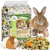 Karma przygotowana jest z suszonych i mielonych zbóż, nasion, warzyw i owoców, bez sztucznych barwników i konserwantów. To prawdziwy festiwal naturalnych smaków, najbardziej zbliżony do pożywienia gryzoni żyjących na wolności. Niska zawartość tłuszczu i bogactwo witamin doskonale wpływają na trawienie.