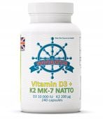 Oprócz witaminy D3, suplement zawiera również witaminę K2 w postaci menachinonu-7 (MK-7) pochodzącą z procesu fermentacji NATTO. Ta unikalna forma witaminy K2 pomaga w utrzymaniu zdrowych naczyń krwionośnych oraz kości, a także zwiększa odporność organizmu na infekcje.