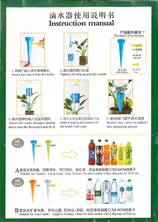 Nawadniacz do roślin doniczkowych przykręcany do standardowego gwintu butelki. Przydatny w każdym domu lub firmie. W prosty sposób zapewnisz odpowiednie nawodnienie swoim domowym roślinom podczas dłuższej nieobecności, np. wyjazdu na wakacje, delegacje itp.