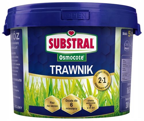 Substral Osmocote nie powoduje wypalenia traw, a jego skład jest przyjazny dla dzieci i zwierząt. Zwiększa liczbę kiełkujących nasion i wspomaga wzrost młodej trawy, dostarczając niezbędne składniki odżywcze w odpowiednich proporcjach.
