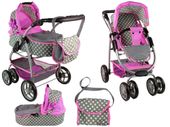 Wózek Dla Lalek Spacerówka 2 w 1 Gondola Torba Różowy Gwiazdki