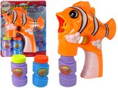 Pistolet działa na 3 baterie typu AA (nie dołączone), co gwarantuje wygodną obsługę dzięki dobrze przemyślanej rączce. Gumowa rurka do pobierania płynu umożliwia szybkie i bezproblemowe napełnianie. A co najfajniejsze, bańki mydlane wydobywają się z buzi rybki, która posiada efektowną lampkę, tworząc cudowną atmosferę w ciemności!