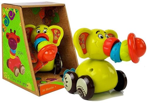 Wszystkie dzieci uwielbiają dźwięki, a słonik z grzechotką na pewno dostarczy mnóstwo radości i atrakcji podczas zabawy. Warto także zwrócić uwagę na szczegóły - na czubku uroczej trąby znajduje się piękny, czerwony kapelusz, który dodaje charakteru tej zabawce. Dzięki czterem kółkom, Słoń może być swobodnie przesuwany po podłodze lub meblach, co rozwija zdolności motoryczne i koordynację ruchową malucha.