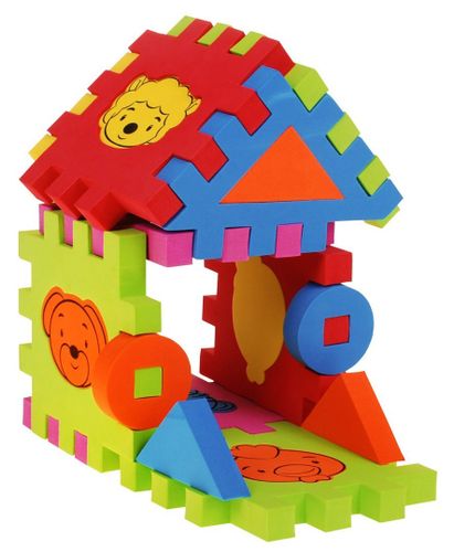 Każdy element puzzli zdobiony jest wizerunkiem zwierzątka lub figury geometrycznej, które można wyciągnąć, uzyskując dodatkowe możliwości zabawy. Zestaw składa się z 6 miękkich plansz o wymiarach: