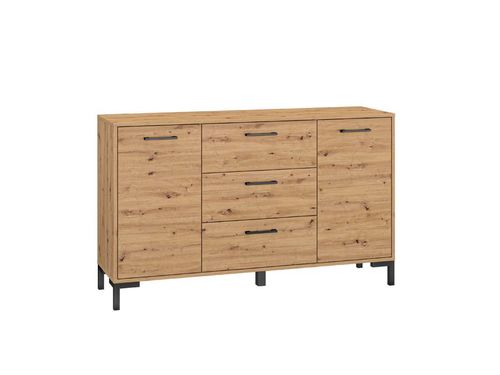 Komoda posiada 2 drzwi i 3 szuflady .