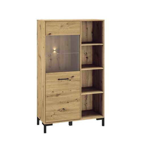 Proste meble świetnie ocieplają wnętrze po przez zastosowany bardzo modny dekor Dąb Artisan. Czarne uchwyty kontrastują z drewnianymi frontami, a jednocześnie współgrają z prostymi nóżkami w tym samym kolorze, nadając meblom nowoczesnego i zarazem eleganckiego wyglądu. Duży wybór komód, pojemna szafa, regały, szafka rtv oraz stolik to elementy dziennej odsłony kolekcji Nevio, która jest odpowiedzią na dobrze znaną już wersję do przedpokoju.