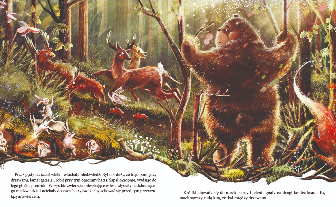 Autor, Monika Kamińska, znana jest z twórczości pełnej ciepła i wartości edukacyjnych, które pomagają dzieciom rozwijać empatię i umiejętność nawiązywania przyjaźni. Książka zawiera 24 strony pełne pięknych ilustracji autorstwa Agnieszki Wajdy, które angażują najmłodszych i wprowadzają w świat lasu, pełnego przyjaznych leśnych bohaterów. Tematyka opowieści skupia się na sile bezinteresownej przyjaźni i akceptacji, nawet gdy ktoś wydaje się głośny i niezdarny, jak niedźwiadek.