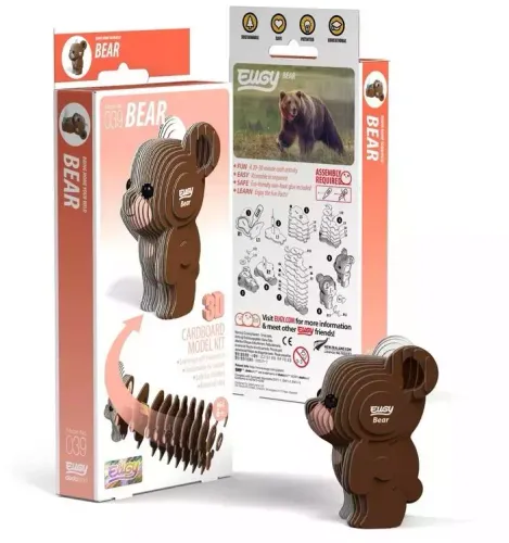 Eugy zaprojektowane w Nowej Zelandii są wykonane z przyjaznego dla środowiska kartonu pochodzącego z recyklingu i farby na bazie ryżu. Zestaw zawiera ponumerowane elementy układanki, nietoksyczny klej oraz instrukcję do zbudowania niedźwiedzia. Zbierz całą serię zwierząt, ptaków, dinozaurów i wiele innych. Dla dzieci w wieku 6 lat+.