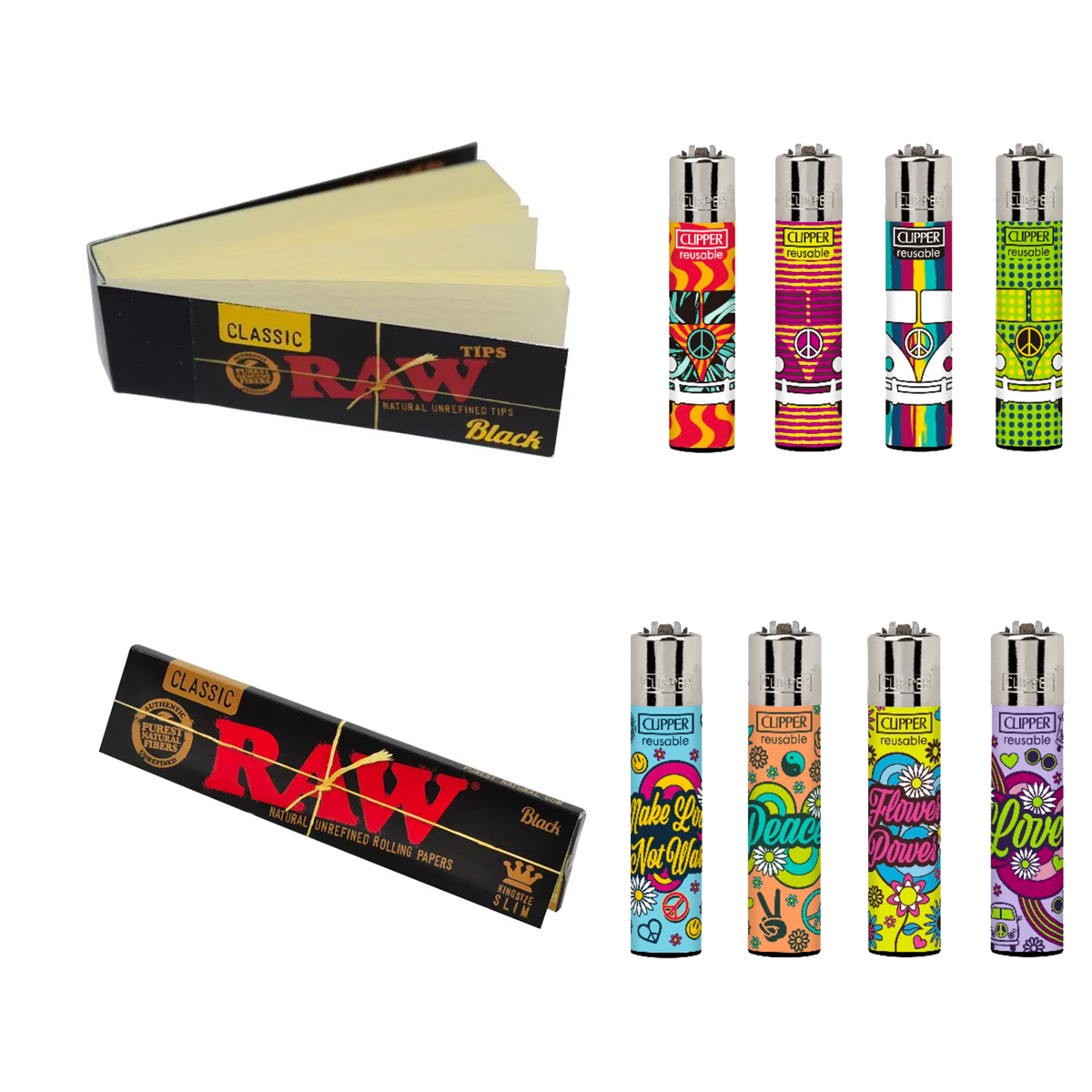Ten zestaw to niezbędnika palacza, składający się z bletek Raw Black King Size Slim, zapalniczki Clipper oraz naturalnych filtrów RAW Black, zapewni niezrównane doznania podczas palenia oraz wygodę użytkowania.