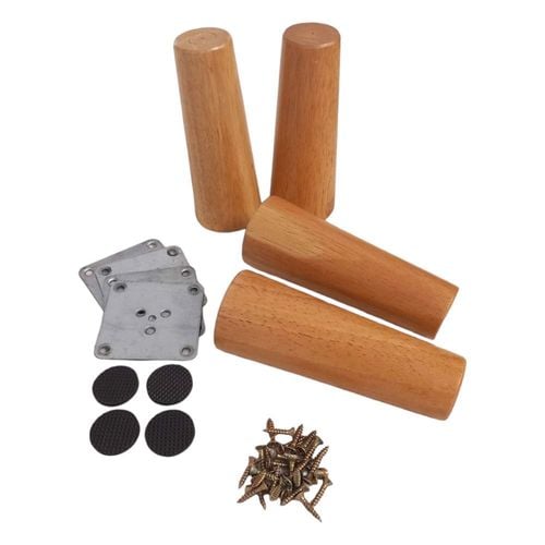 Zestaw 4 nóżek meblowych jest dobrze wykonany z litego drewna gumowego, powleczony lakierem, wytrzymały, trwały i błyszczący.