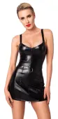 Model Noir Handmade to krotka, dopasowana sukienka na szerokich regulowanych ramiączkach, wykonana z miękkiego, elastycznego materiału w głębokim czarnym kolorze. Charakterystyczne pionowe szwy optycznie wysmuklają sylwetkę, podkreślając jej atuty. Sukienka posiada zamek błyskawiczny na całej długości z przodu, co ułatwia zakładanie oraz pozwala na indywidualne dopasowanie wyglądu. Praktyczny, odpinany pasek z dekoracyjnym metalowym pierścieniem oraz zapięciem na zatrzaski z tyłu dodaje modelowi unikalnego charakteru.