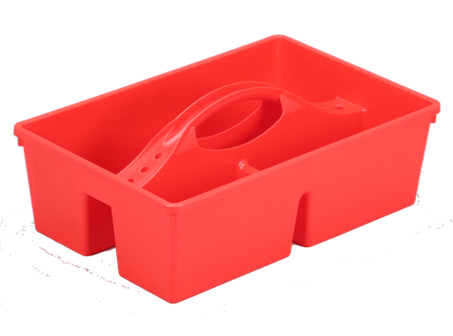 Wielofunkcyjna skrzynka wykonana z polipropylenu w kolorze czerwonym do przenoszenia różnego rodzaju narzedzi ręcznych.