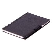 Eko notes w twardej oprawie z dołączonym długopisem w rozmiarze biurkowym (zbliżony do A5 lub większy).