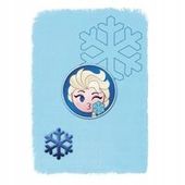 Notes o wymiarach 21 cm x 15 cm z kartkami w linie. Notes jest pokryty przyjemnym w dotyku pluszem oraz przyjazną grafiką z Emoji Frozen.