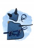 Ten wyjątkowy zestaw hobby horse został starannie wykonany ręcznie z najwyższej jakości materiału zamszowego, który zapewnia niezrównaną przyjemność dotyku i długotrwałą wytrzymałość. Precyzyjne wykonanie każdego elementu - nauszników, derki, kantara oraz wodzi - gwarantuje perfekcyjne dopasowanie i niezawodność podczas każdej sesji treningowej.