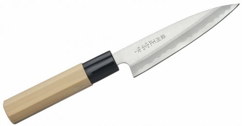 Tradycyjny japoński nóż z grubą, zwężającą się klingą, który służy do odgławiania i filetowania ryb w taki sposób, żeby nie uszkodzić ich delikatnego mięsa. W Japonii bywa często używany do sprawiania mięsa drobiowego, ale nie jest klasycznym tasakiem i nie powinno się nim mocno uderzać. Aby przeciąć ość, wystarczy lekko nacisnąć grzbiet noża i wykonać szybkie, precyzyjne cięcie. Ostry czubek i krótkie ostrze ułatwiają kontrolę ruchów, co jest szczególnie ważne, gdy trzeba dostać się nożem do ciasnych miejsc.