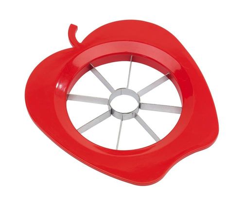 Nóż do jabłek SPLIT z plastikowym uchwytem w kształcie jabłka i ostrzami ze stali nierdzewnej.