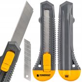 Nóż tapicerski Powermat został wyposażony w ostrze o wymiarach 0,5 × 18 × 100 mm, które zapewnia dokładne i czyste cięcie w szerokim zakresie materiałów.