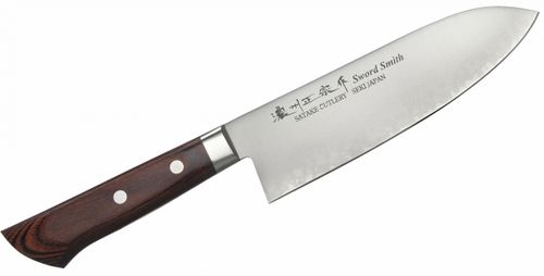 Nóż Mahogany Santoku 17 cm Satake Unique to idealne narzędzie dla każdego pasjonata gotowania, który pragnie podnieść swoje umiejętności kulinarne na wyższy poziom. Ten wszechstronny japoński nóż kuchenny, posiadający 17 cm ostrze, jest perfekcyjny do krojenia warzyw, owoców, mięsa i ryb, co sprawia, że stanie się niezastąpionym towarzyszem w każdej kuchni.