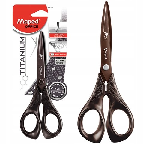Nowoczesne nożyczki Expert Titanium o długości 17 cm marki Maped to niezawodne narzędzie przeznaczone głównie dla chłopców, którzy cenią sobie bezpieczeństwo i precyzję podczas cięcia. Zaprojektowane z myślą o użytkownikach wymagających wysokiej jakości, nożyczki te wyposażone są w ostrza pokryte powłoką tytanową, która gwarantuje długotrwałą ostrość oraz odporność na rdzę i ścieranie. Dzięki temu cięcie materiałów takich jak papier, karton, folia czy taśma klejąca staje się łatwiejsze i bardziej precyzyjne, eliminując konieczność wymiany narzędzia nawet po 200 000 cięć.