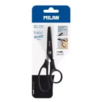 Nożyczki szkolne z ostrzem w tym samym kolorze co plastikowa rączka. Kolor czarny, seria specjalna Shadow. Ostrze ze stali nierdzewnej z zaokrągloną końcówką. Długość 13,4 cm. Idealne do użytku szkolnego. Oryginalny produkt stworzony przez własny dział badawczo-rozwojowy MILAN. Rozmiar nożyczek: 13,3 x 5,3 x 1,1 cm.