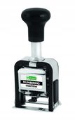 Numerator wyposażony jest w blokadę transportową zabezpieczającą przed przypadkowym przesunięciem cyfr podczas przenoszenia. W zestawie znajdują się dwa wymienne wkłady tuszujące, pojemnik z tuszem oraz wskaźnik do regulacji pierścienia.