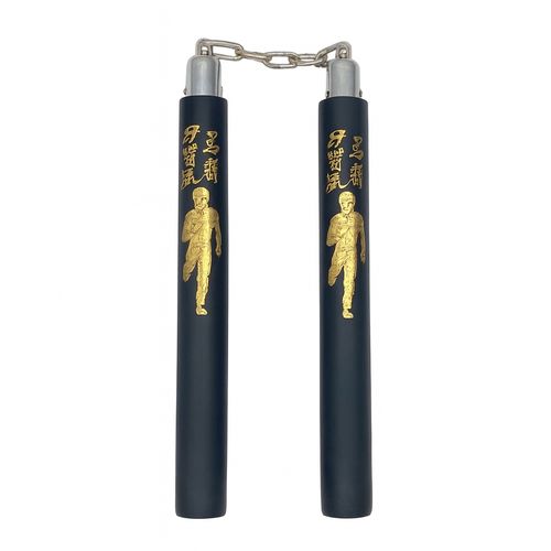 Nunchaku wykonane z plastiku obłożonego pianką. Z łożyskiem, połączone łańcuchem. Dobre dla początkujących lub do treningu z partnerem.