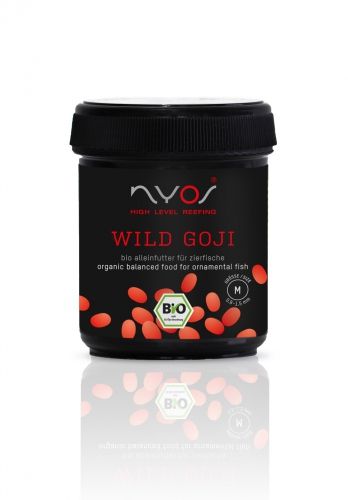 Jasno czerwone organiczne jagody goji sprawiają, że NYOS ® WILD GOJI jest wyjątkowy. Ten naturalnie miękki, organiczny, wzmacniający barwnik pokarm zawiera dużą ilość witamin, karotenów i ksantyn, które pomagają rybom w naturalnych kolorach.