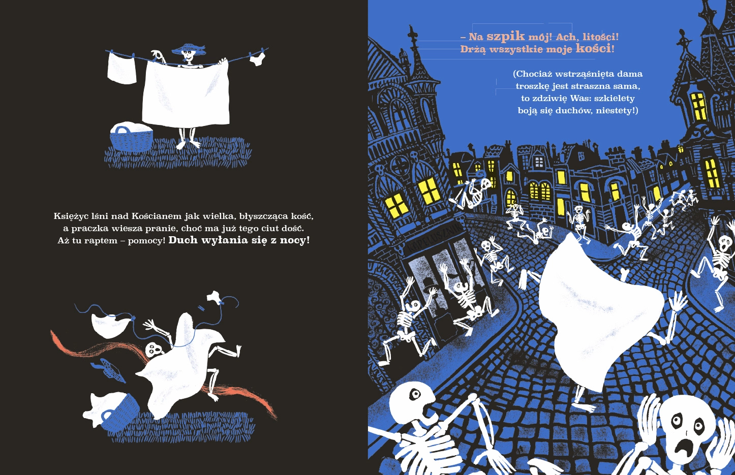 W pewnym spokojnym miasteczku zaczynają dziać się tajemnicze rzeczy. Do rozwikłania zagadki zostaje zatrudniony nie kto inny, tylko słynny Szergnat Holmes. Mieszkańcy – urocze szkielety – skarżą się na bestię, która spędza im sen z oczu i zakłóca porządek. Rymowany kryminał znajdzie swoje rozwiązanie, a mieszkańcy spokój dopiero wtedy, gdy detektyw dokładnie zbada wszystkie przypadki i znajdzie winnego. Uwaga, będziecie się trząść – ze strachu i ze śmiechu ;-) W książce znajduje się kod QR z nagraniem. Czytają: Monika Pikuła i Mateusz Damięcki. Książka jest współfinansowana z programu Instytutu Francuskiego.