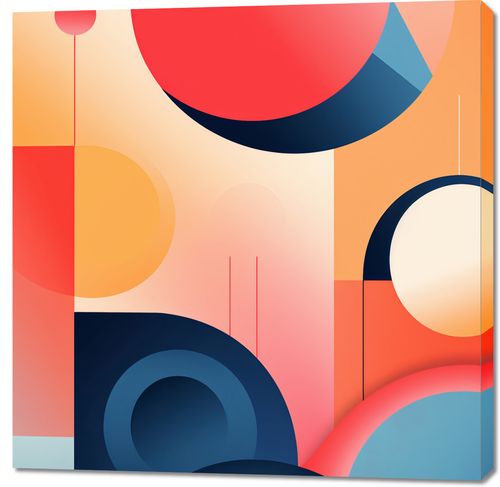 Obraz z serii geometria zatytułowany Geometryczne Marzenia. Wyraziste formy kolorystyczne i płynne linie łączą się, tworząc harmonię między ciepłymi i chłodnymi tonami. Czerwone okręgi unoszące się w powietrzu kontrastują z głębokim błękitem, wprowadzając uczucie lekkości i swobody. Proste, pionowe linie dodają rytmu i dynamiki kompozycji. Idealny dla nowoczesnych przestrzeni mieszkalnych oraz galerii sztuki współczesnej.